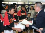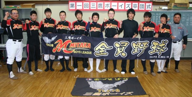 三鷹ボーイズ初の卒団式です。選手9名、全員集合しました。選手3名からスタートしたチームも、いまや総勢29名。今年、1年生大会に出場することができたのも、卒団する1期生が頑張ったからです。ありがとう!