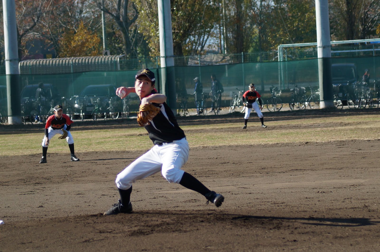 強豪・府中イーグルスボーイズに挑んだ2回戦は圧巻の試合展開でした。2回表、先頭打者の4番・山本主将がイーグルスのエース・杉浦投手から左中間に推定飛距離120mの特大ホームラン。さらに、5番・児玉選手(四球)、7番・石川選手(遊内安打)を塁に置き、痛烈なライナーで右中間を破る8番・西田選手の3塁打で2点を追加。鮮やかな速攻で3点を先制し、試合を有利に進めました。その後は1点を取り、取られての攻防。先発の児玉投手が5回を2失点に抑え、香取投手にマウンドを託しました。そして、3点差で迎えた最終回、2点を失いながらも逃げ切り、準決勝進出を決めました。 準決勝の対サムライボーイズ戦は、緩急をつけてコースをつく相手投手の前に打線が沈黙、投手陣はずるずると失点を重ねる展開。三鷹ボーイズの典型的な負け試合のパターンにはまり、まさに完敗でした。